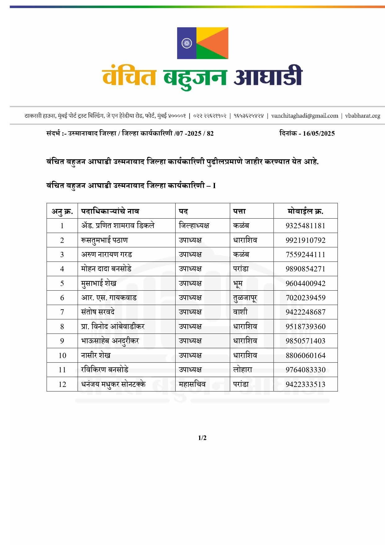 अणदूर ,तुळजापूर तालुका येथील अणदूर येथील आंबेडकरी चळवळीतील ज्येष्ठ कार्यकर्ते आर एस गायकवाड यांची वंचित बहुजन आघाडी धाराशिव जिल्हा उपाध्यक्ष पदी निवड झाली आहे.