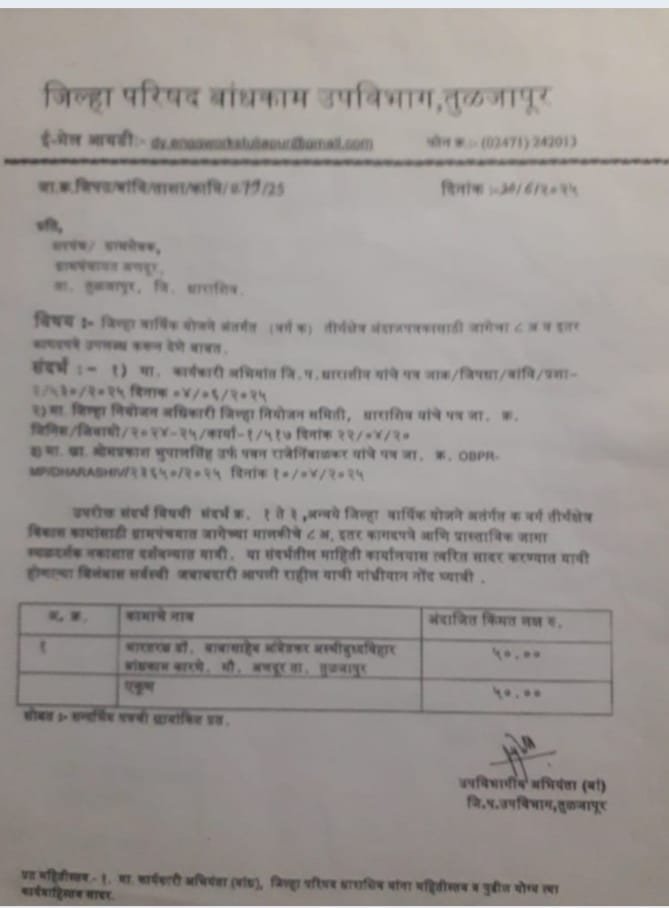 बौद्ध समाजाच्या भावना आणि या ठिकाणाचे महत्त्व लक्षात घेऊन खा. ओमराजे निंबाळकर यांनी एप्रिल २०२५ मध्ये जिल्हाधिकारी, धाराशिव यांना अधिकृत पत्र देत ५० लाखांचा निधी मंजूर करण्याची शिफारस केली होती. त्यानंतर जिल्हा प्रशासन व जिल्हा परिषद, धाराशिव यांच्या संयुक्त पुढाकाराने अणदूर येथील बांधकाम स्थळाची पाहणी करण्यात आली. यावेळी सरपंच रामचंद्र (दादा) आलूरे, उपअभियंता श्री. टी.डी. पोळे, कनिष्ठ अभियंता श्री. एस.एस. काकडे आदी अधिकारी उपस्थित होते.