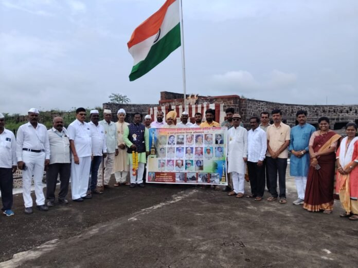 नळदुर्ग येथे नुकतेच मराठवाडा मुक्ती संग्राम दिना निमित्त ऐतिहसिक किल्ल्यावर नळदुर्ग येथील अप्पर तहसिलदार प्रमोद गायकवाड यांच्या हस्ते तिरंगा ध्वजारोहण करण्यात आले याच वेळी मराठवाडा हैद्राबाद मुक्ती संग्रमातून मुक्त करणारे जवान ज्या ठिकाणी धाडसी कारवाया घडल्या तेथील ऐतिहसिक अलियाबाद प्राचीन पुलाचे पुजन करण्यात आले शहीद बचित्तरसिंग व भारताचे पौलादी पुरुष सरदार वल्लभभाई पटेल यांच्या प्रतिमेचे पूजन करण्यात आले या वेळी नळदर्ग येथील स्वातंत्र्य सैनिकांचे पुत्र देवानंद बनसोडे , भाजपाचे सुशांत भूमकर , जेष्ठ पत्रकार विलास येडगे माजी नगरसेवक कमलाकर चव्हाण नळदुर्ग शहर पत्रकार संघाचे अध्यक्ष सुहास येडगे , शिवम कम्प्युटर सेंटरचे मुख्य प्रवर्तक सतीश पुदाले भाजपाचे भिमाजी घुगे , पद्माकर घोडके , भाजपाचे विलास राठोड , माजी नगरसेवक किशोर नळदुर्गकर , सामाजिक कार्यकर्ते बंडू कसेकर ,माजी नगरसेवक दत्तात्रय कोरे , पत्रकार मित्र अमर भाळे , पत्रकार दादासाहेब बनसोडे पत्रकार आयुब शेख , नायब तहसीलदार भोकरे , माजी सैनिक जाधव , सुनील उकंडे नळदुर्ग येथील अप्पर तहसिल चे पेशकर विकास वैध , रविद्र होर्टीकर , आपू स्वामी , मोहसीन फुलारी , मुकुंद भुमकर , मारुती कोणे , नेताजी गव्हाणे , कांबळे ,सामाजिक कार्यकर्ते बलभीमराव मुळे हुतात्मा नातू निलय्या स्वामी , पपू पाटील , पांडुरंग पुदाले , ज्ञानेश्वर घोडके , सामाजिक कार्यकर्ते संजय विठ्ठल जाधव , सोसायटीचे चेअरमन संजय बेडगे , दिशा बँकेचे व्यवस्थापक उमेश जाधव [ सावकार ] भाजपाचे बबन चौधरी , सह शिक्षिका कविता पुदाले भाजप मंडल अध्यक्ष रंजना राठोड किल्लेदार नागनाथ गवळी जयभिम वाघमारे सर्जे सह कार्यकर्ते मोठ्या संख्येने उपस्थित होते