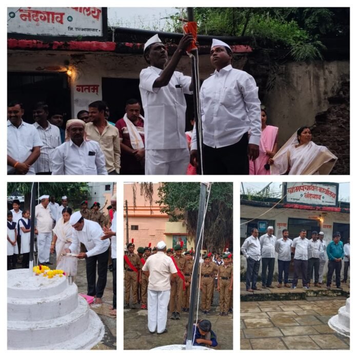 नंदगाव (शाम नागिले ) तुळजापूर तालुक्यातील नंदगाव येथील ग्रामपंचायत कार्यालय येथे 17 सप्टेंबर मराठवाडा मुक्ती संग्राम दिन मोठ्या उत्साहात साजरा करण्यात आला.या वेळी नंदगाव गावाचे सरपंच शशिकांत बळीराम नागिले यांच्या हस्ते प्रमिमेचे पूजन व ध्वजारोहण करण्यात आले .