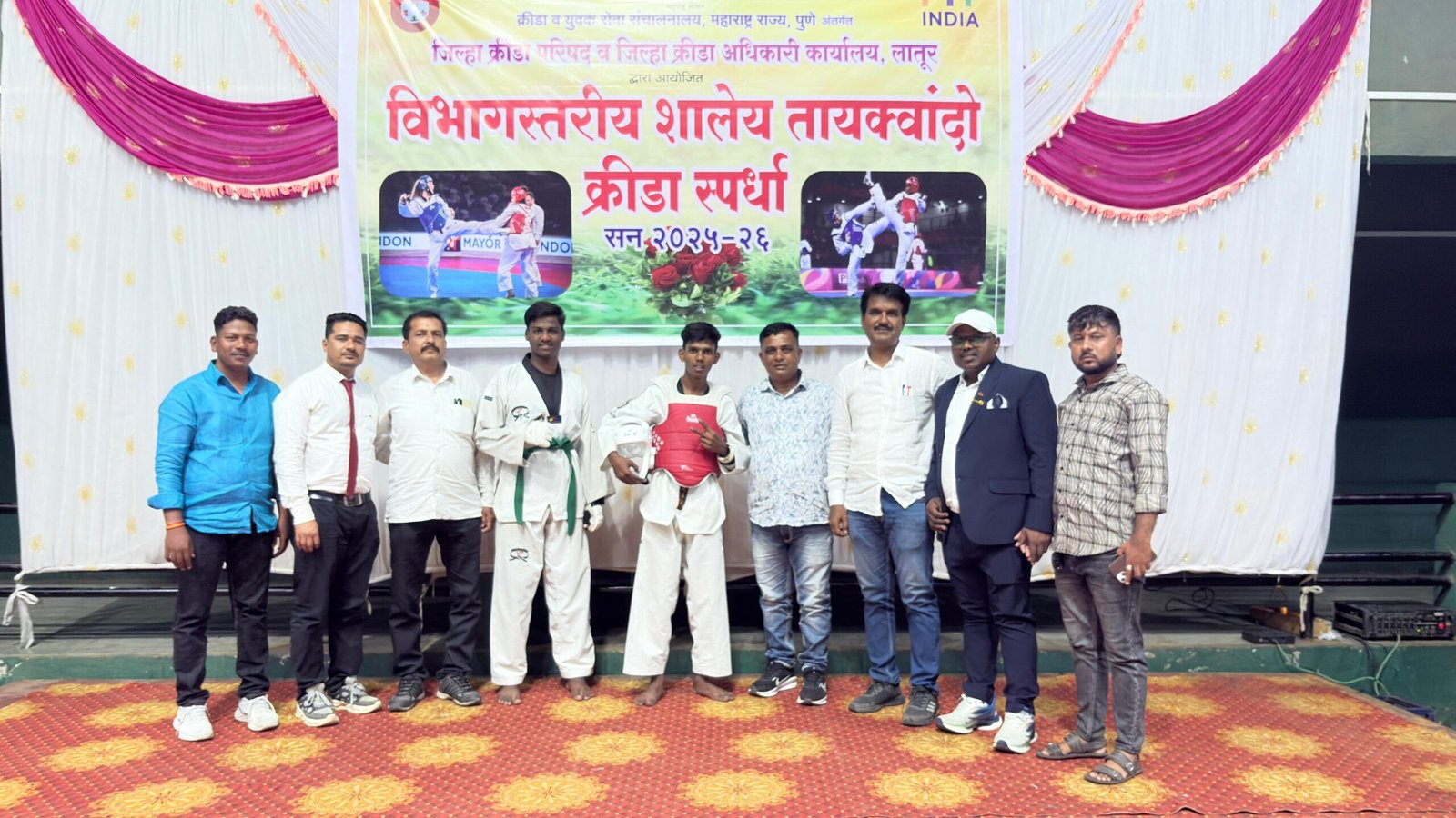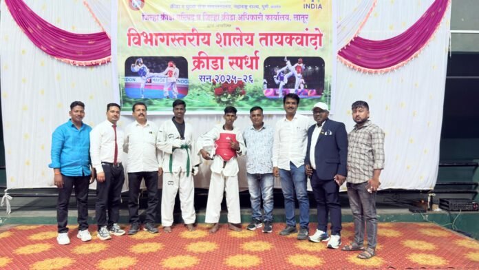 विभागीय स्तरावर शालेय तायक्वांदो क्रिडा स्पर्धेत नळदुर्ग येथील कला, विज्ञान व वाणिज्य महाविद्यालयीन विद्यार्थ्यांनी घवघवीत यश संपादन केल्याने या विद्यार्थ्यांचे सर्वत्र कौतुक व अभिनंदन होत आहे. लातूर येथील विभागीय क्रीडा संकुल येथे दि. २४ सप्टेंबर रोजी आयोजित केलेल्या १९ वर्ष वयोगटातील या स्पर्धेत महाविद्यालयातील मल्लिकार्जुन कोने या विद्यार्थ्याने ( ४८ कि.ग्रॅ. ) वजन गटात सुवर्ण पदक पटकावले आहे तर ऋतुराज मोरे या विद्यार्थ्याने (७३ कि. ग्रॅ. ) वजन गटात सुवर्ण पदक मिळविले आहे. विभागीय स्पर्धेत या दोन्ही विद्यार्थ्यांनी उत्कृष्ट कामगिरी करून सुवर्णपदक मिळविल्याबद्दल मल्लिकार्जुन कोने व ऋतुराज मोरे यांची राज्य स्तरीय तायक्वांदो स्पर्धेसाठी निवड झाली आहे. हे कला विज्ञाव व वाणिज्य महाविद्यालय ठरत आहे सर्व गुण संपन्न या विद्यार्थ्यांना क्रिडा शिक्षक डॉ. कपिल सोनटक्के यांचे मार्गदर्शन लाभले. या स्पर्धेत सुवर्णपदक संपादन केल्याबद्दल संस्थेचे अध्यक्ष माजी मंत्री मधुकरराव चव्हाण सचिव उल्हास दादा बोरगांवकर कार्याध्यक्ष रामचंद्र दादा आलुरे , बाबुराव भाऊ चव्हाण उपाध्यक्ष डॉ. अभय शहापूरकर सहसचिव प्रकाशराव चौगुले, शाएबाज काझी , अँड. प्रदीपराव मंटगे , लिंबराज कोरेकर महाविद्यालयाचे प्राचार्य डॉ सुभाष राठोड कार्यालयीन अधिक्षक धनंजय पाटील महाविद्यालयातील सर्व शिक्षक व शिक्षकेतर कर्मचारी यांनी अभिनंदन केले.