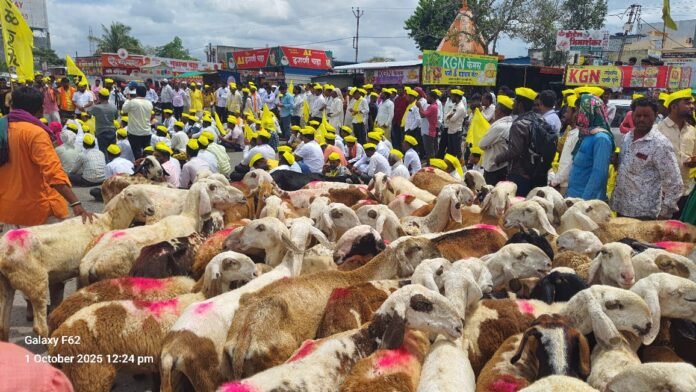 धनगर आरक्षण कृती समितीच्या अंदोलन प्रसंगी कार्यकर्त्याची डरकाळी