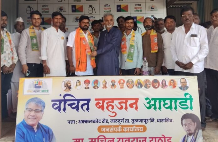 यावेळी प्रास्ताविक वंचित बहुजन आघाडीचे जिल्हा उपाध्यक्ष आर एस गायकवाड यांनी केले यावेळी नळदर्ग शहरातील युवक ओमकार कलशेट्टी , गणेश कलशेट्टी , अमर कलशेट्टी , साहेबलाल शेख , फैयाज शेख , शैलश डुकरे , माल्लिनाथ होनाळे , सचिन कलशेट्टी , सुरज जाधव , राहुल राठोड , अभिजित पाटील आदिनी वंचित बहुजन आघाडीत प्रवेश केला .