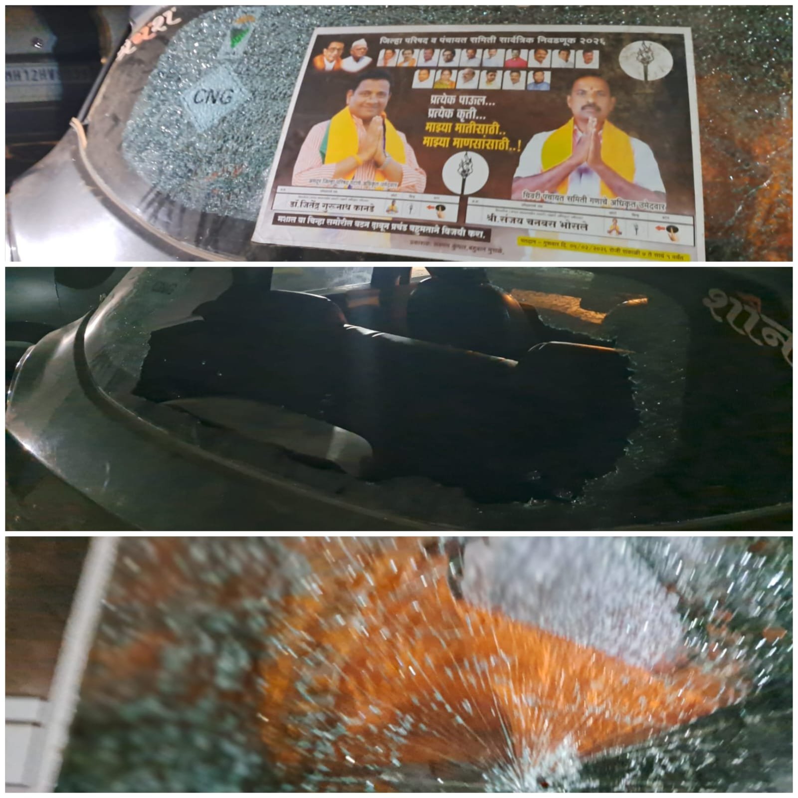 काल झालेल्या प्रचार सभेनंतर काही अज्ञात समाजकंटकांनी जाणीवपूर्वक बॅनर फाडून प्रचार साहित्याचे नुकसान केले. एवढ्यावरच न थांबता, सभेला उपस्थित राहिलेल्या नागरिकांच्या गाड्यांची तोडफोड करण्यात आली. या घटनेमुळे परिसरात तणावाचे वातावरण निर्माण झाले असून नागरिकांमध्ये भीतीचे वातावरण पसरले आहे.